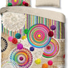 Het Inessa dekbedovertrek uit de unieke HIP Collection is een vrolijke verschijning. De neutrale ondergrond laat de felle kleuren nog beter uit komen. De schitterende mandala's, pompoms en de verdere versiering zorgen voor een rijk en fleurig plaatje. De diverse materialen die terugkomen in de print van de mandala's laten het overtrek er heerlijk zacht uit zien. De achterzijde van het dekbedovertrek is effen gekleurd met een subtiel grafisch dessin.