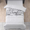 Het lazy dekbed is direct te gebruiken als dekbed én bedsprei. De vaste hoes in klassiek wit met elegante tekst geeft je bed een luxe uitstraling en bespaart je dagelijks tijd bij het opmaken. Verkrijgbaar in 2-persoonsformaat (200x200 cm). Ideaal voor drukke huishoudens, logeerbedden, studenten of op de camping.