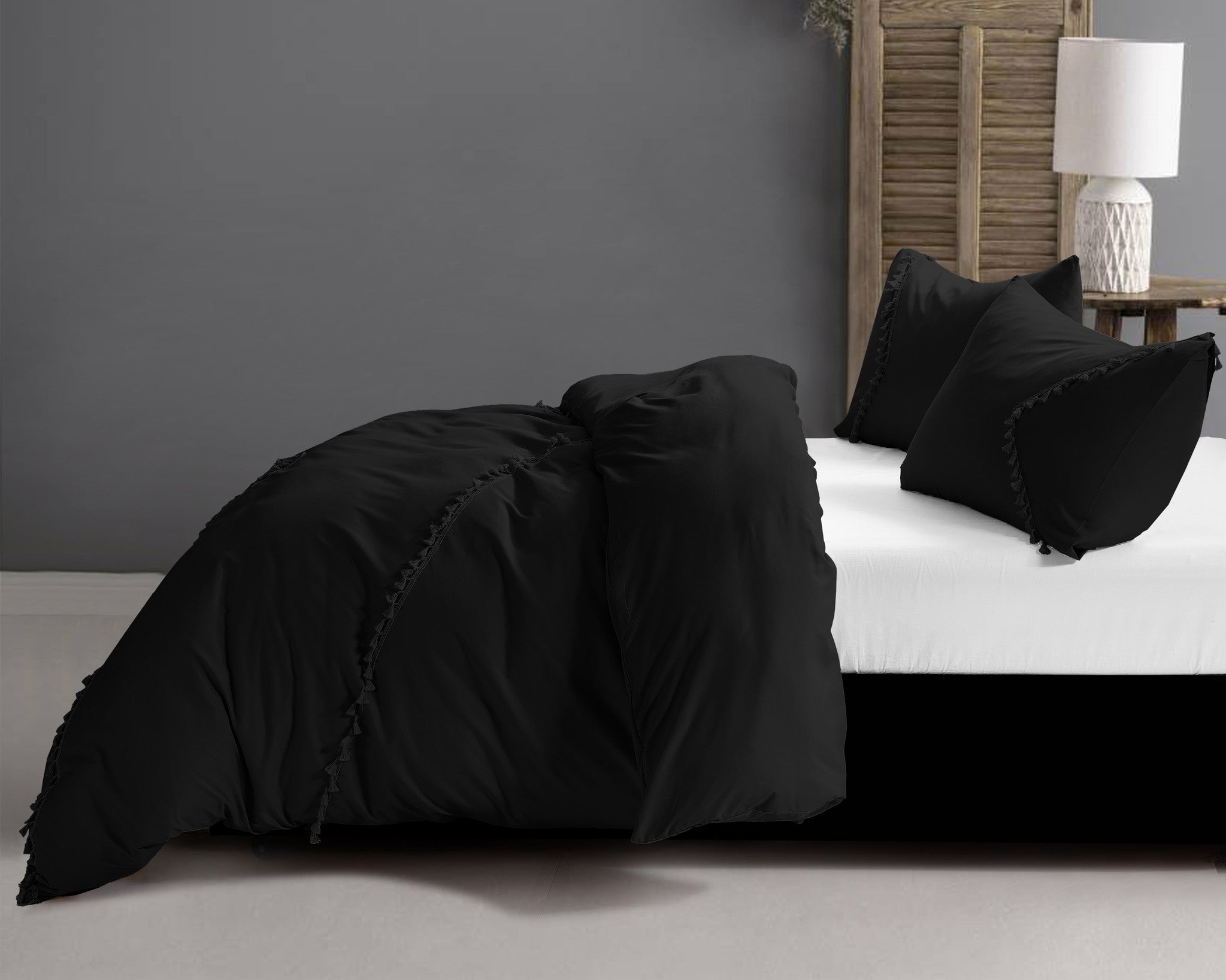 Dit model is vervaardigd uit 100% micropercal, wat betekent dat de weving dicht is en de vezels fijn: dat levert een aantal prettige eigenschappen op. De stof valt soepel waardoor het dekbed er mooi op ligt en je bed direct verzorgd oogt. Dankzij de microvezel blijft de kleur diep zwart, wordt kreukvorming beperkt en is strijken vrijwel overbodig — ideaal voor dagelijks gebruik. Bovendien is de stof sneldrogend, goed geschikt voor mensen die warme nachten hebben of snel beddengoed willen wisselen. Tot slot: de uitstekende afwerking zorgt voor een stijlvolle uitstraling, met kant‑accenten die het geheel een subtiele luxe geven — perfect wanneer je slaapkamer af mag spreken op zowel comfort als design.