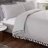 Inspired dekbedovertrek Tassel is een grijze dekbedhoes met witte kwastjes rond het dekbedovertrek en langs elke kussensloop