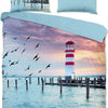 Pure dekbedovertrek Lighthouse is een dekbed overtrek met een print van de zee met een vuurtoren met ondergaande zon.