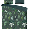 Good Morning dekbedovertrek Urban jungle is een dekbed overtrek met een print van planten en een uni groene achterkant.