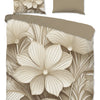 De bovenkant van het dekbedovertrek is voorzien van een prachtig bloemen- en bladerenmotief in rustige taupe tinten. Deze elegante print zorgt voor een natuurlijke en harmonieuze uitstraling in de slaapkamer. De onderzijde is uitgevoerd in effen taupe, wat zorgt voor balans en eenvoud, en maakt het gemakkelijk te combineren met diverse interieurstijlen.