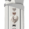 Het Good Morning Bernet dekbedovertrek brengt een knusse, natuurlijke sfeer in de slaapkamer. De combinatie van zachte grijstinten, warme bruintinten en charmante details zoals hartjes en linten maakt dit dessin ideaal voor de koude seizoenen of voor wie houdt van een behaaglijke look. Het centrale hertmotief in een groot hart vormt een echte eyecatcher die rust en elegantie uitstraalt.