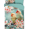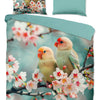 Good Morning Chibi Aqua katoenen dekbedovertrek 140×220 cm – romantische vogels en bloesem