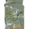 De bovenkant van het dekbedovertrek is versierd met een natuurlijk motief van bladeren en takjes in warme groen- en bruintinten. Dit geeft je slaapkamer een frisse en rustgevende uitstraling. De onderzijde is effen groen, wat zorgt voor balans en eenvoud, en maakt het dekbedovertrek gemakkelijk te combineren met verschillende slaapkamerstijlen.