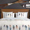 ✓ Dubbelzijdig dessin: rustgevende verenprint en klassiek blauw-wit ruitpatroon