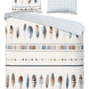 Met het Good Morning Niba dekbedovertrek breng je de rust van de natuur direct naar je slaapkamer. De verfijnde verenprint in tinten van blauw, bruin en zand straalt een gevoel van lichtheid en elegantie uit. Dit overtrek is ideaal voor wie houdt van een frisse, natuurlijke look die eenvoudig te combineren is met andere kleuren en materialen in je interieur.