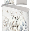 Het Good Morning Norda dekbedovertrek brengt de kalmte van de natuur naar je slaapkamer. De sierlijke afbeelding van een hert, omringd door zachte bladeren en subtiele hartjes, creëert een dromerige en harmonieuze sfeer. De combinatie van wit, lichtgrijs/ecru en blauwtinten maakt dit dekbedovertrek tijdloos en veelzijdig – ideaal voor wie houdt van een serene en stijlvolle uitstraling.