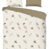 De bovenkant van het dekbedovertrek is voorzien van een prachtig bladerenmotief in rustige taupe tinten op een crèmekleurige ondergrond. Deze elegante print zorgt voor een natuurlijke en harmonieuze uitstraling in de slaapkamer. De onderzijde is uitgevoerd in effen taupe, wat zorgt voor balans en eenvoud, en maakt het gemakkelijk te combineren met diverse interieurstijlen.