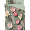 Het Senzi dekbedovertrek van Good Morning is een ware blikvanger dankzij het dromerige bloemenpatroon in tinten van roze, wit en zacht paars. De groene achtergrond zorgt voor een natuurlijke, kalmerende basis die rust uitstraalt. Dit romantische dessin brengt de schoonheid van de natuur naar binnen en creëert een gevoel van harmonie en ontspanning in je slaapkamer. De effen lichtgroene achterzijde maakt het geheel stijlvol en veelzijdig.