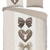 Haal warmte en gezelligheid in huis met het Good Morning flanellen dekbedovertrek in crème en bruin. Dit dekbedovertrek straalt een rustieke en landelijke charme uit dankzij de sfeervolle afbeeldingen van strikjes en een hertenhoofd in hartvormig design. De natuurlijke kleurencombinatie van crème en bruin maakt het een perfecte keuze voor wie houdt van een warme en knusse slaapkamerinrichting. Dankzij het zachte flanel is dit dekbedovertrek ideaal voor koude nachten.