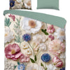 Het dekbedovertrek heeft een uniek en sfeervol design dat zowel romantisch als modern oogt. De onderkant is voorzien van een kleurrijke blauwe bloemenprint in zachte tinten, terwijl de bovenkant een rustige effen groene kleur heeft. Deze combinatie geeft jouw slaapkamer een frisse, natuurlijke uitstraling die eenvoudig te combineren is met verschillende interieurstijlen.