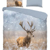Good morning flanel dekbedovertrek Jolly is een prachtige dekbedhoes met een print van een hert in winters landschap
