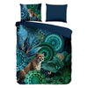 Het Nyah dekbedovertrek van HIP Collection is een artistieke blikvanger voor je slaapkamer. Tegen een blauw-groene achtergrond prijkt een sierlijke luipaard, omgeven door weelderige bloemen en bladeren in mandala-vorm. De combinatie van natuurlijke en grafische elementen creëert een levendig en sfeervol geheel. De achterzijde van het overtrek heeft een rustiger blauw grafisch patroon – perfect om af te wisselen voor een subtielere uitstraling.