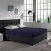 Geniet van het ultieme slaapcomfort met dit navy blauwe hoeslaken van dubbel geweven Jersey katoen. De hoekhoogte van 33 cm maakt ze uitermate geschikt voor boxsprings en matrassen met een topper, waardoor je kunt rekenen op een perfecte pasvorm.