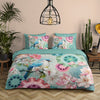 Geef je slaapkamer een kleurrijke en levendige make-over met het Eldisa dekbedovertrek van HIP Collection. Dit opvallende dessin combineert romantische roze bloemen, een sierlijke blauw-witte vogel en speelse mandala’s op een frisse mintgroene achtergrond. De achterzijde in een geometrisch mintgroen patroon zorgt voor een rustige balans en maakt het overtrek perfect om af te wisselen in uitstraling.