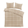 Dit overtrek heeft een moderne beige kleur met een wit ruitpatroon. Het creëert een strakke, eigentijdse sfeer en is perfect voor moderne en minimalistische woonstijlen.