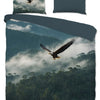Met dit Pure dekbedovertrek haal je de schoonheid van de natuur rechtstreeks je slaapkamer binnen. Het realistische design van een adelaar die zweeft boven een bergachtig woud geeft een gevoel van vrijheid en ruimte. Dankzij de combinatie van veelkleurige details en een rustige grijze achterzijde past dit dekbedovertrek moeiteloos in zowel moderne als klassieke interieurs.