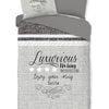 Het opvallende breipatroon in grijstinten geeft dit dekbedovertrek een warme en huiselijke look, terwijl de decoratieve tekst een vleugje luxe toevoegt. De effen grijze bovenkant brengt rust in het geheel, waardoor het dekbedovertrek gemakkelijk in verschillende slaapkamerstijlen past. Ideaal voor wie houdt van een combinatie van modern en sfeervol design.