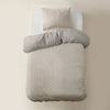 Ervaar ultiem comfort en tijdloze elegantie met het Sleeptime Art Beige dekbedovertrek. Dit prachtige overtrek, uitgevoerd in zachte flanel fleece, combineert warmte en zachtheid met een verfijnde Japandi-stijl. De bovenkant met subtiel reliëf in een modern geometrisch patroon geeft een stijlvolle, natuurlijke uitstraling, terwijl de effen beige onderkant rust en harmonie toevoegt aan je slaapkamer. Perfect voor wie houdt van een serene, luxe sfeer met extra warmte tijdens koelere nachten.